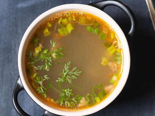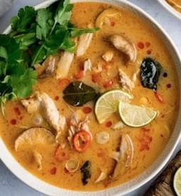 Lemon coriander, chicken ,egg drop ,golden mushroom,carrots,bambo