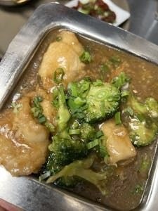 Batter-Fried cauliflower, garlic, ginger, chili paste, soy sauce,
